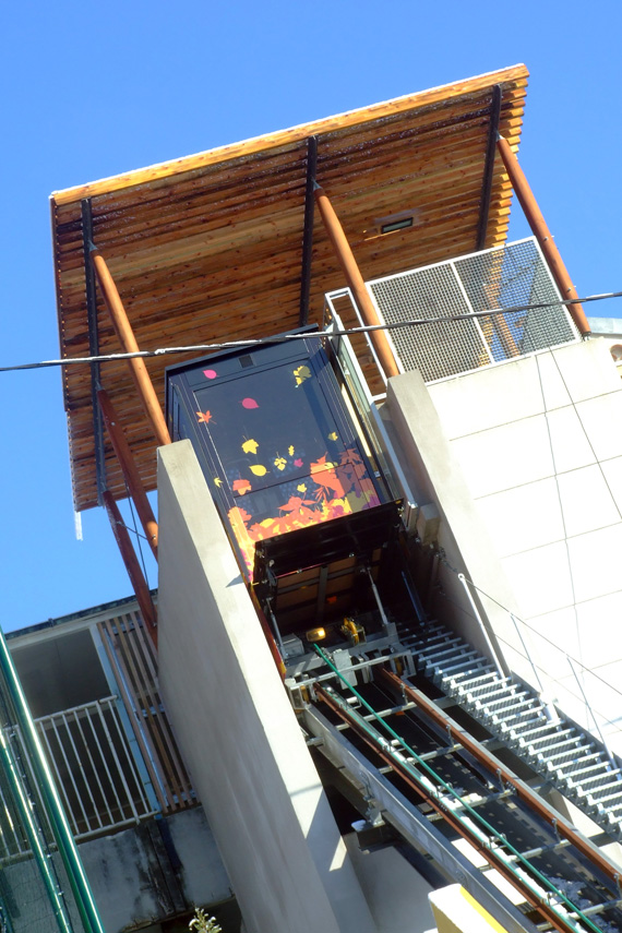 « L’ascenseur incliné (qui me fait invariablement penser au départ d’un téléphérique) »